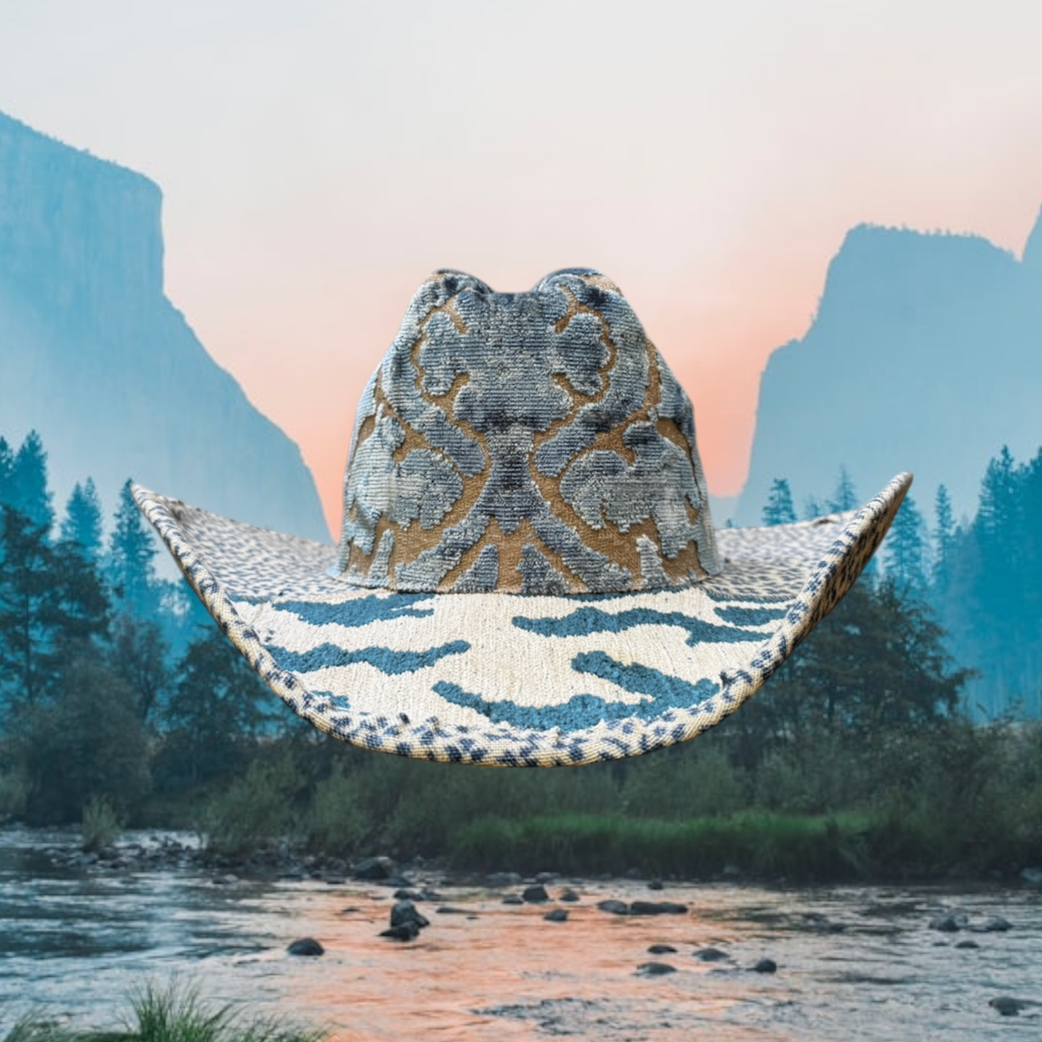 ZANDRIA pieces are created by upholstering rare and vintage interior textiles onto hard canvas hats, giving new life to materials rich with history. Each piece is made by hand in the USA, blending my family’s legacy of design with the enduring spirit of the American West.