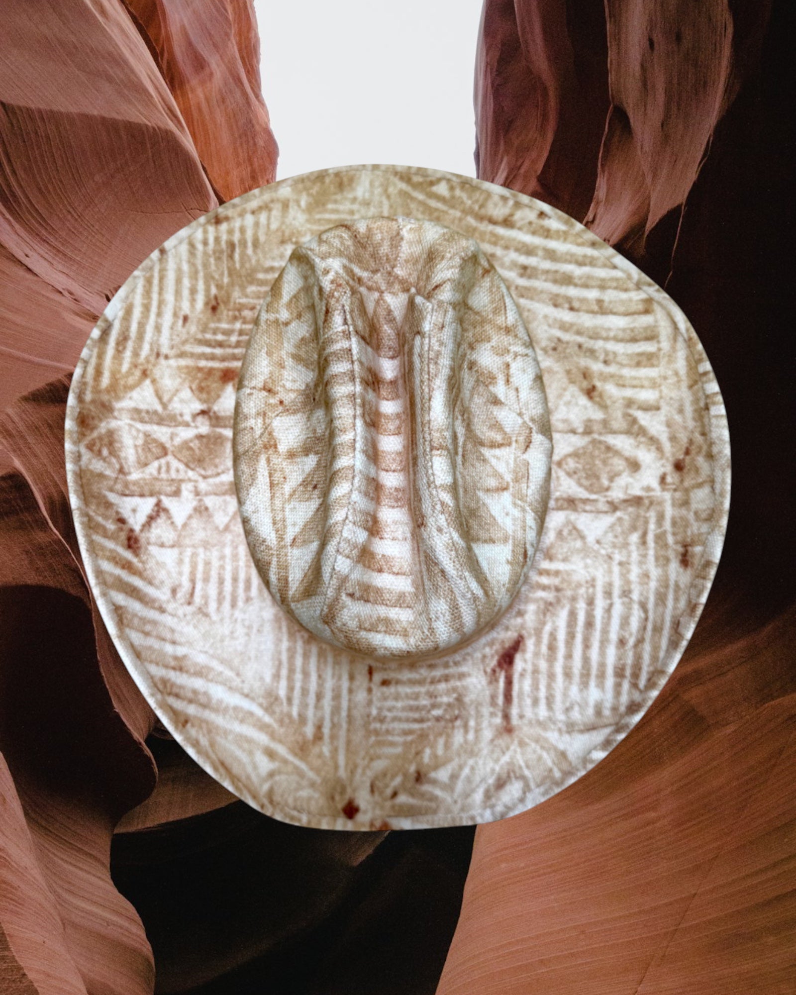 Dust Devil is upholstered in a rare linen blend, patterned with swirling desert-inspired markings that echo the movement of wind across sand. Its earthy tones and organic texture bring out the rugged beauty of the Southwest. Finished with a silk liner and handmade leather tag, this one-of-one design balances raw nature with refined detail.